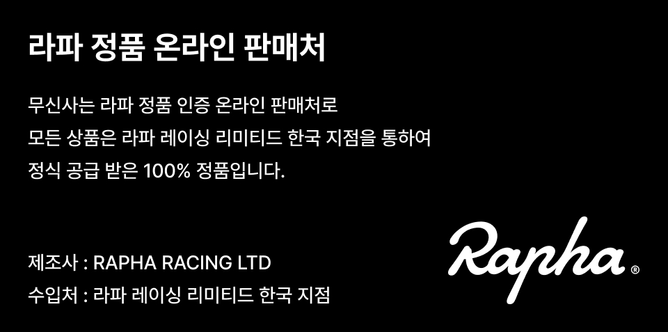 라파(Rapha)는 2004년에 런던에서 설립된 이래로 사이클링 브랜드의 의미를 정립하고, 새롭게 정의해오고 있습니다. 사이클링 스포츠에는 변화를 일구어내는 힘이 있다고 믿으며, 이를 원동력으로 전 세계 수천 명의 RCC 회원들과 함께 세계적인 사이클링 클럽을 구축하고 있습니다. 주요 도시에 자리한 22개의 클럽하우스를 통해 연 4,000번이 넘는 라이드가 진행되며 매년 회원들과 라이드 하는 길이는 482만km 이상에 달합니다. 라파의 사내 아틀리에에서는 세계 최정상 선수들과 협력하고 이들을 위한 의류를 디자인하고 이 여정에서 지속가능성과 타협 없는 퍼포먼스를 구현할 수 있도록 소재의 혁신을 거듭하며 한계를 넓히고 있습니다.