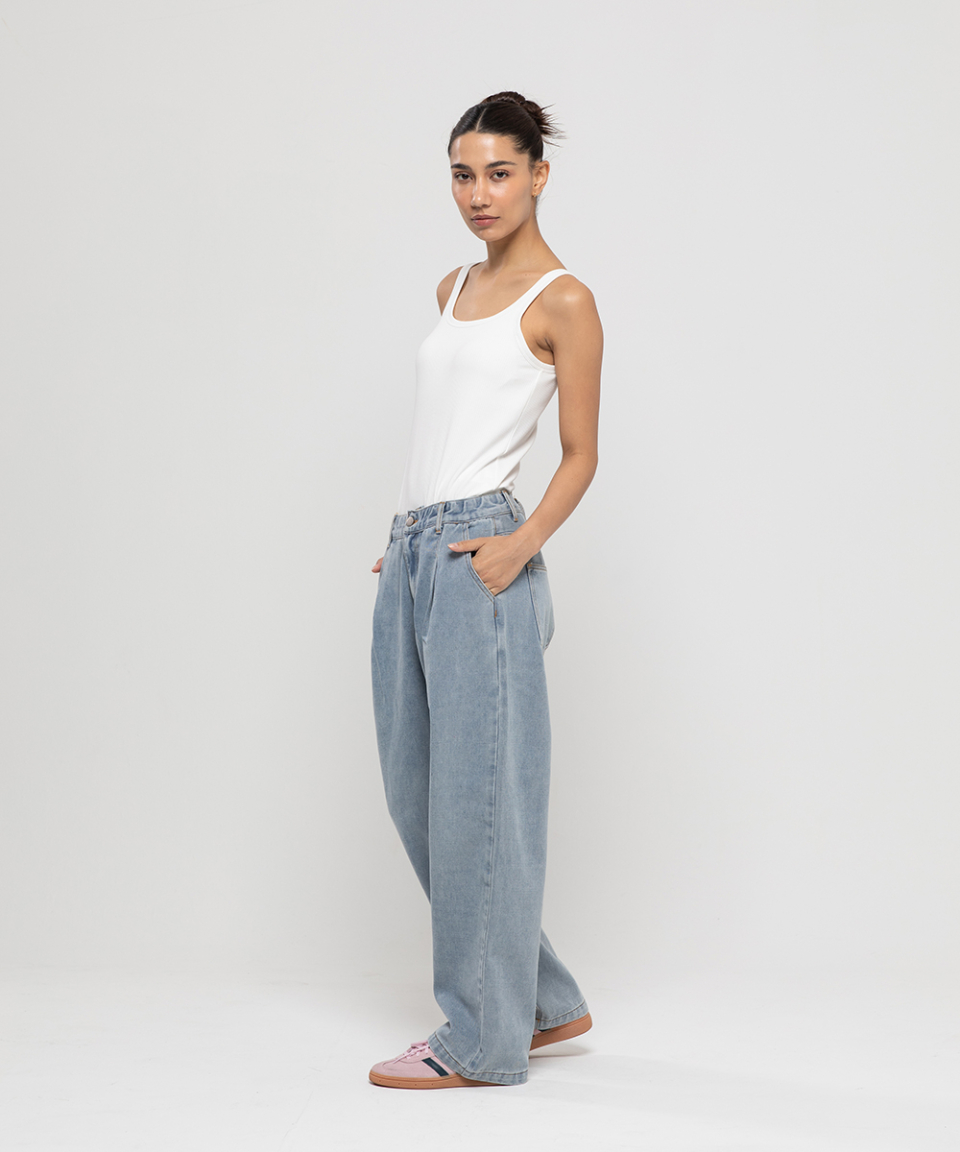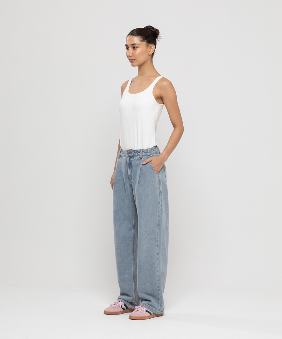 논페이드 와이드 데님팬츠[라이트 블루]