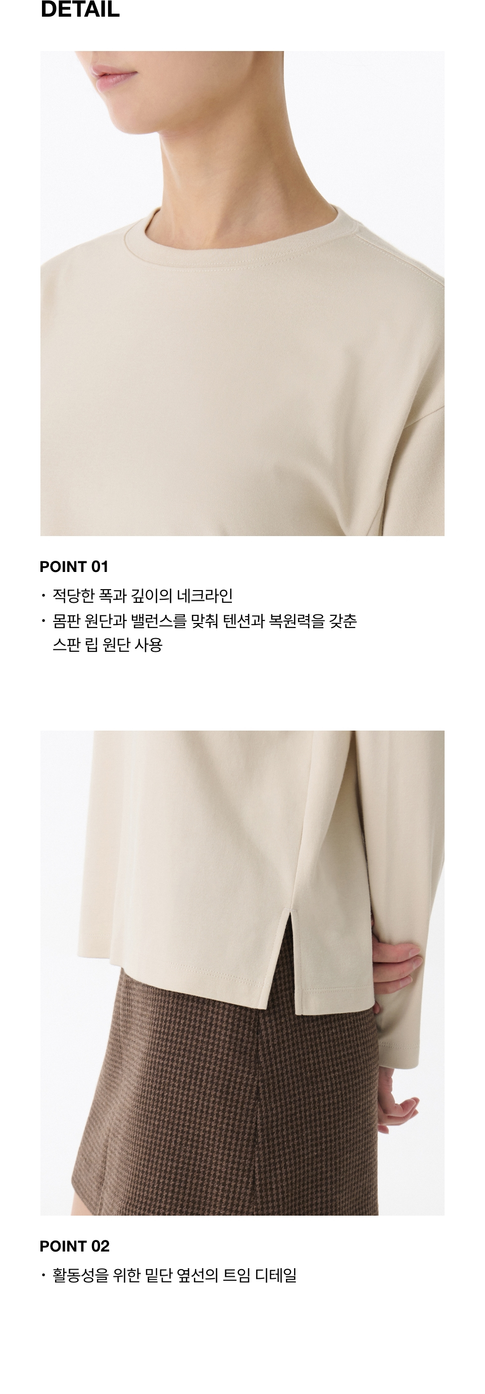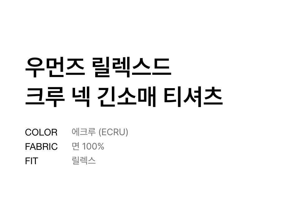 우먼즈 릴렉스드 크루 넥 긴소매 티셔츠 [에크루]
