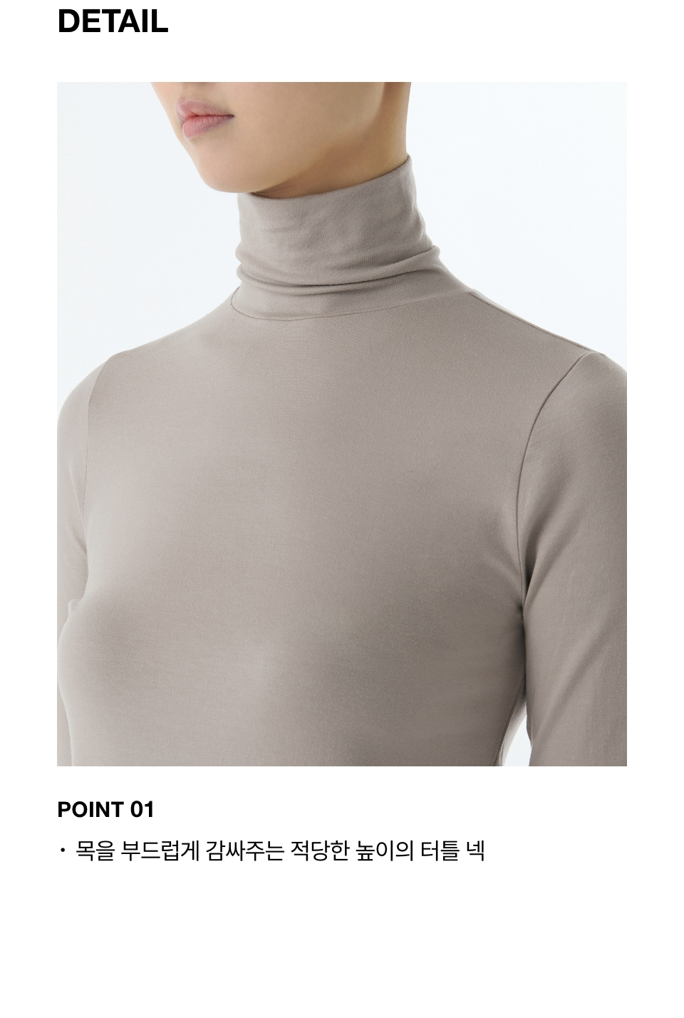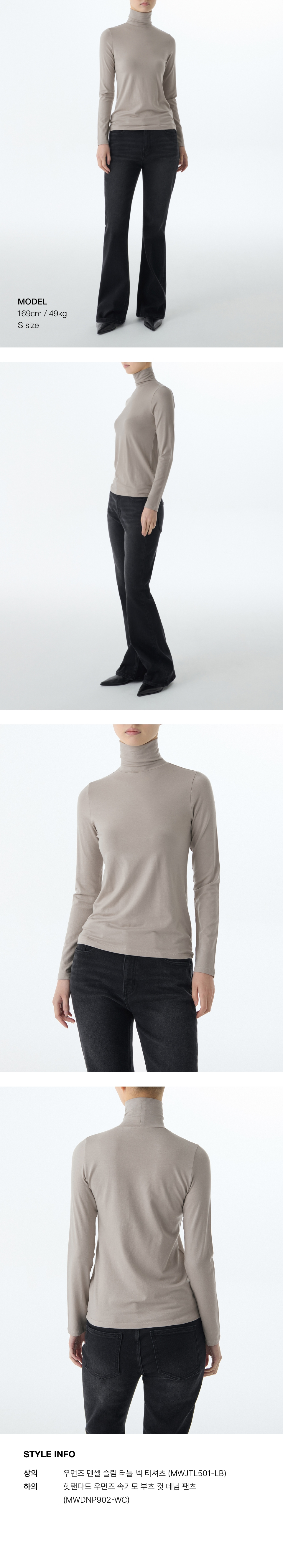 우먼즈 텐셀 슬림 터틀 넥 티셔츠 [더스티 베이지]