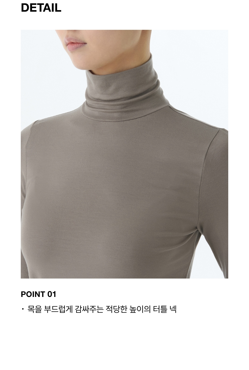 우먼즈 텐셀 슬림 터틀 넥 티셔츠 [토프]