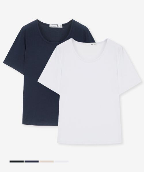 [2PACK] 여성 U넥 오버핏 스판 반팔티셔츠 4칼라