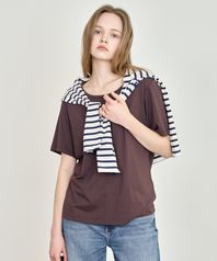 여성 U넥 오버핏 스판 반팔티셔츠 다크브라운 LATS0210