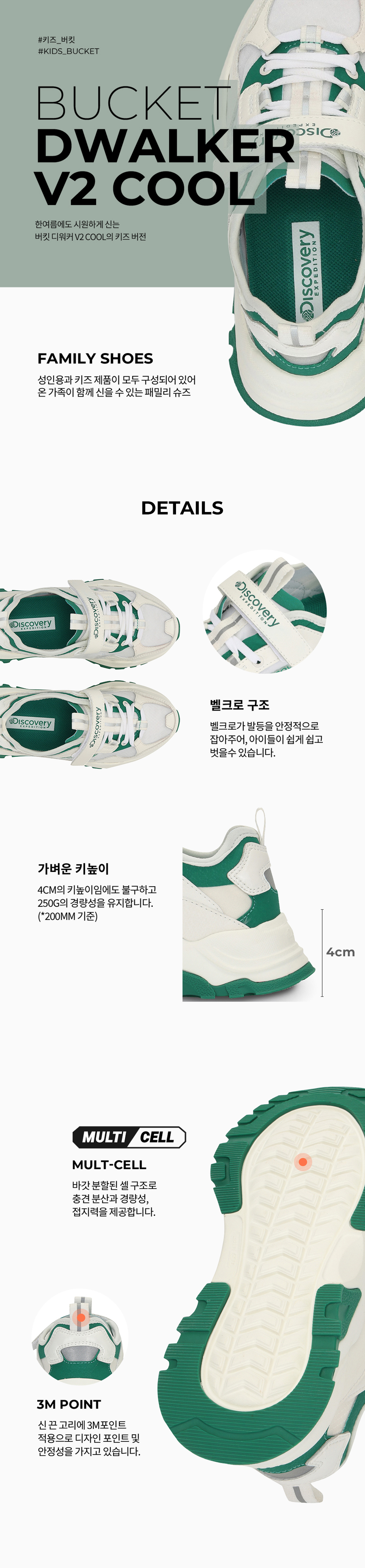 컬러 : GREEN 상품코드: DKSH1201N-GNS 상품명: 버킷 디워커 V2 COOL 키즈 (GREEN) 소재: 겉감1 폴리에스터100%겉감2 합성가죽 안감 폴리에스터100%창 이브이에이/합성고무