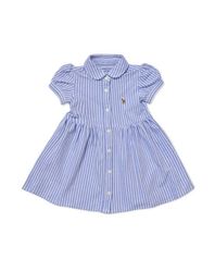[적립금 5%] 베이비 여아 스트라이프 니트 옥스포드 폴로 드레스 - 블루