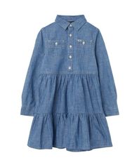 [적립금 5%] 여아 4-6.5세 티어드 샴브레이 셔츠드레스 - 블루