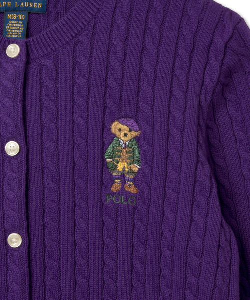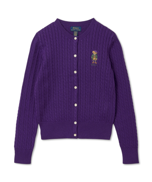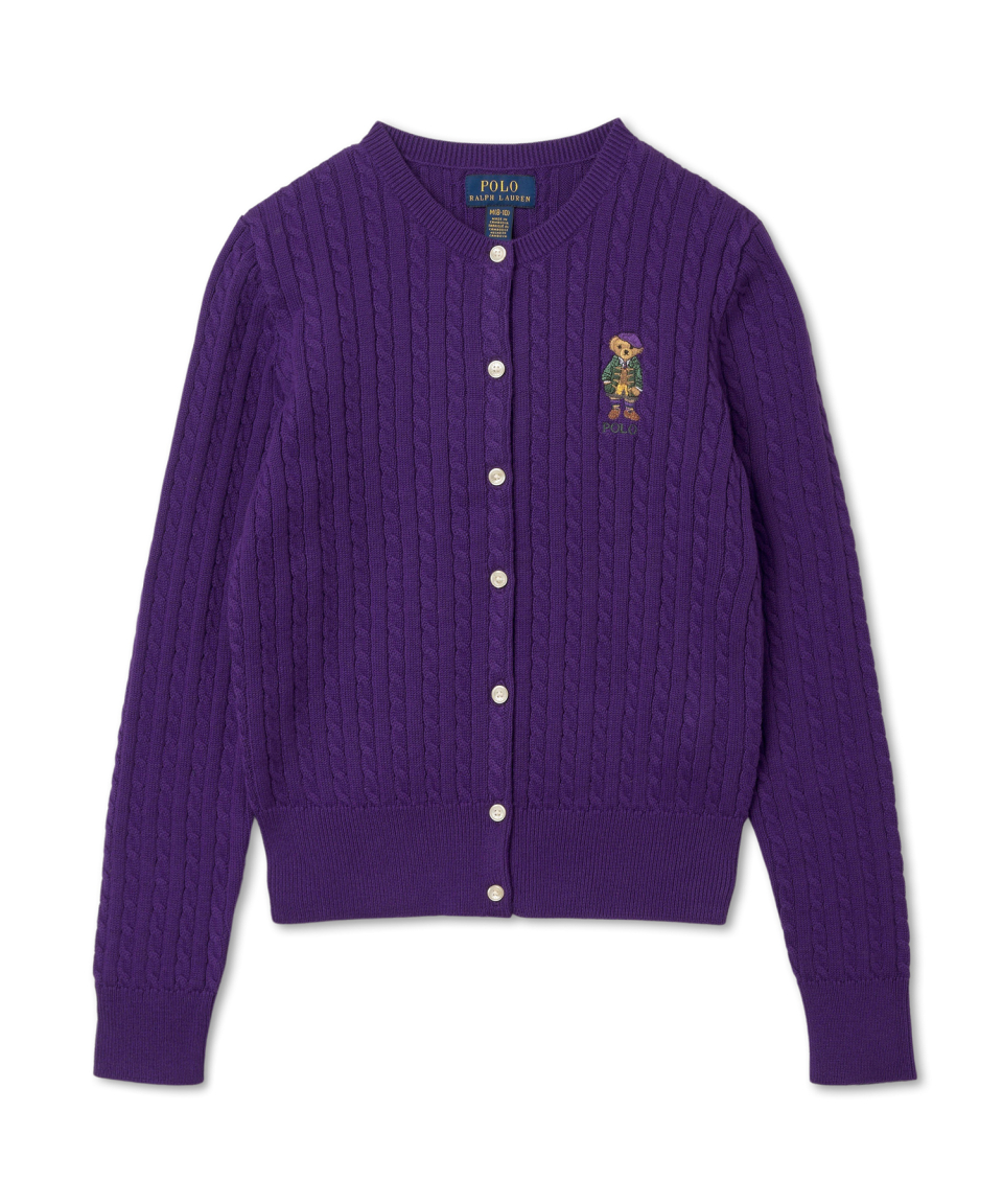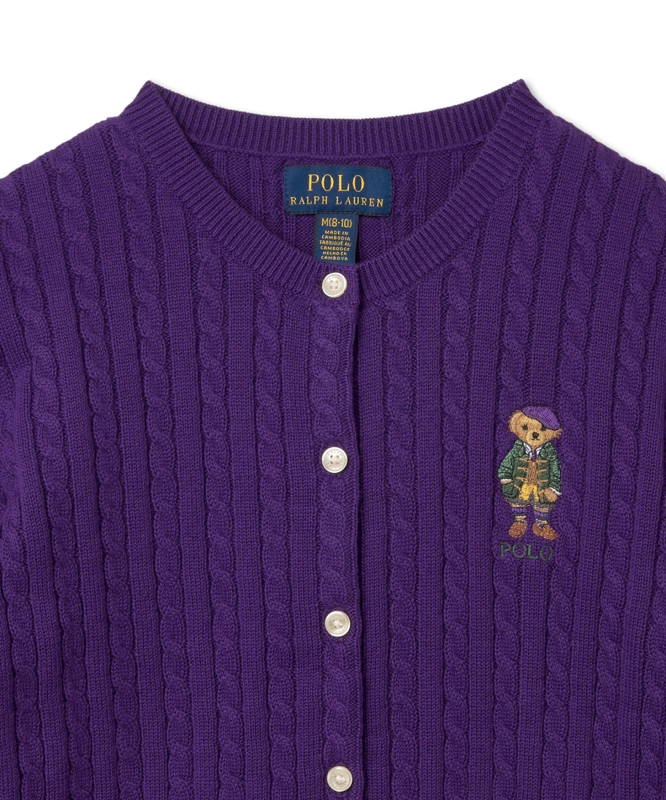 여아 7-16세 폴로 베어 미니 케이블 코튼 카디건-퍼플