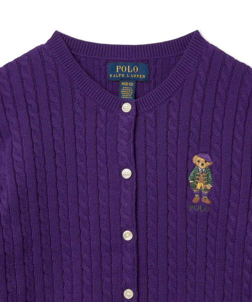 [적립금 5%] 여아 2-7세 폴로 베어 미니 케이블 코튼 카디건-퍼플