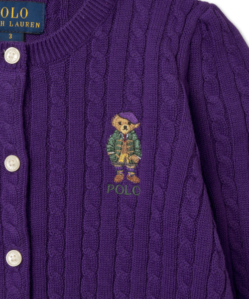 여아 2-7세 폴로 베어 미니 케이블 코튼 카디건-퍼플