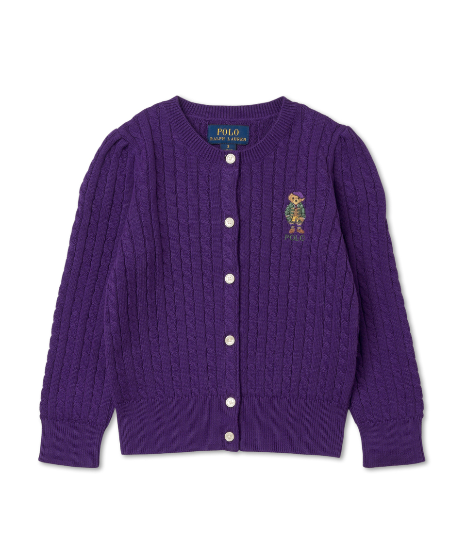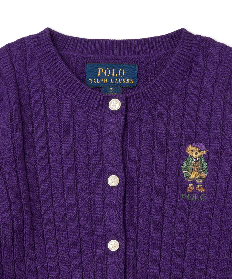 [적립금 5%] 여아 7-16세 폴로 베어 미니 케이블 코튼 카디건-퍼플
