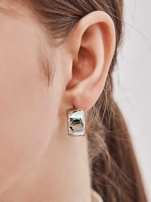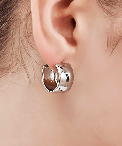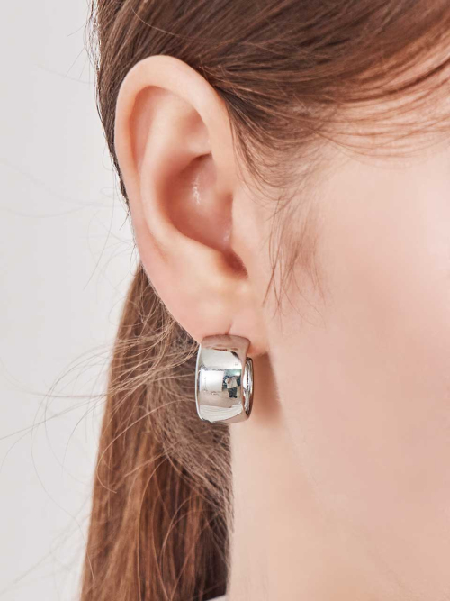 실버 볼드 라운드 하프 링 귀걸이 GISVEE140