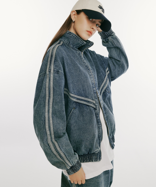 심볼 로고 트랙 데님 집업 자켓_라이트블루