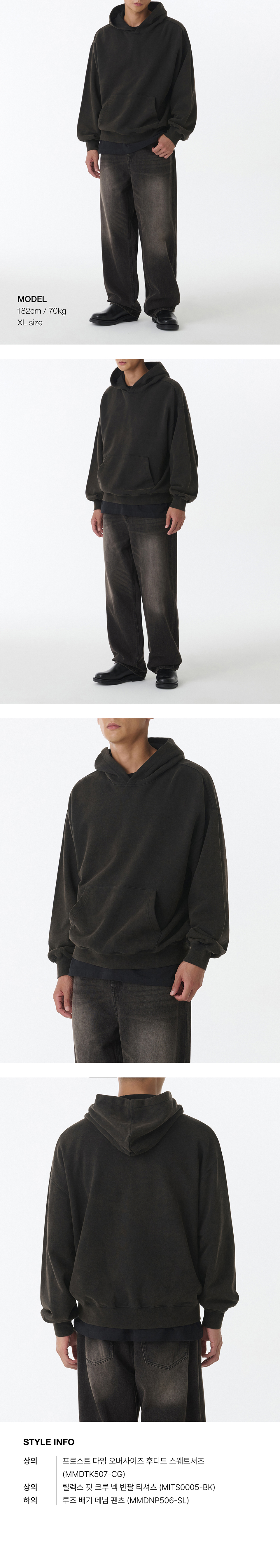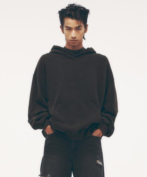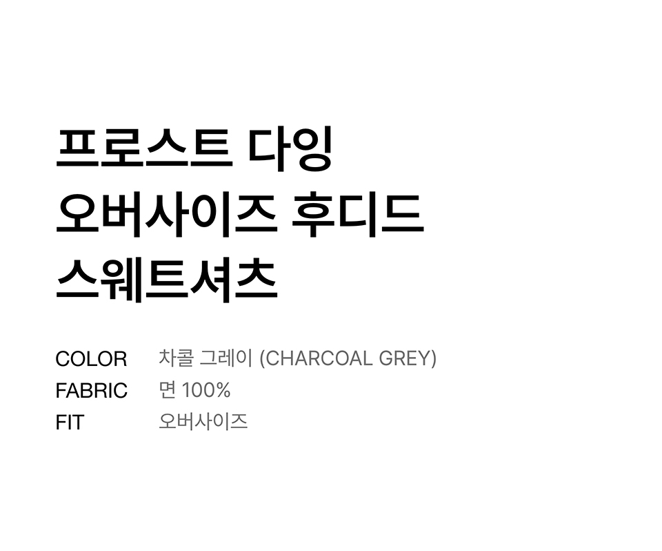 프로스트 다잉 오버사이즈 후디드 스웨트셔츠 [차콜 그레이]