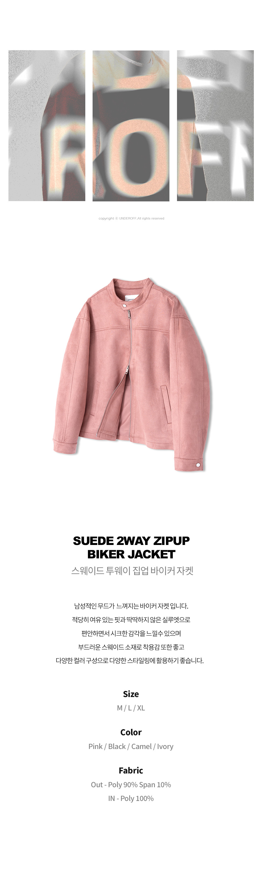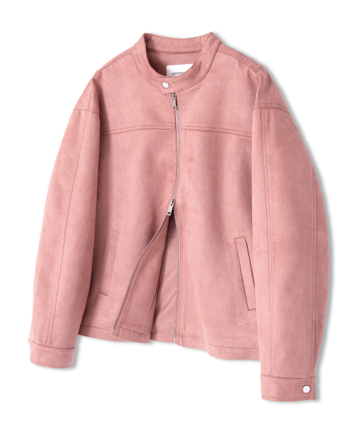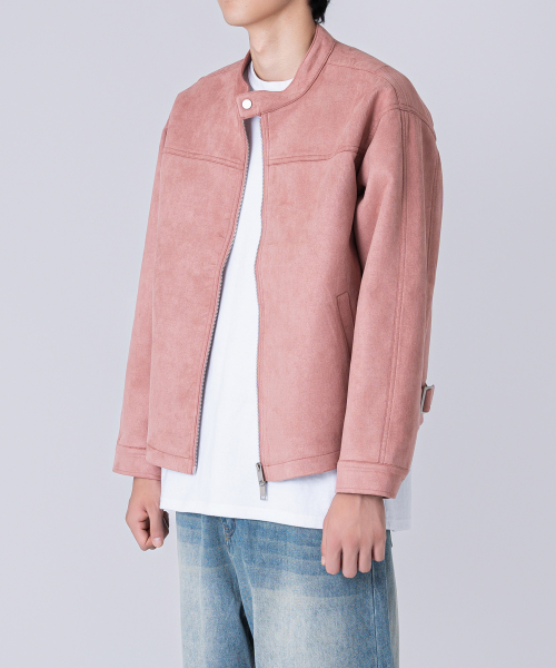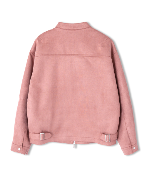 스웨이드 투웨이 집업 바이커 자켓 핑크