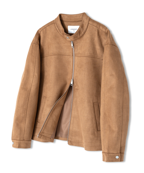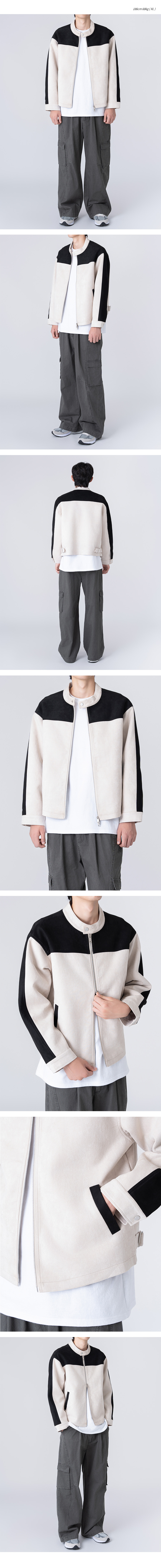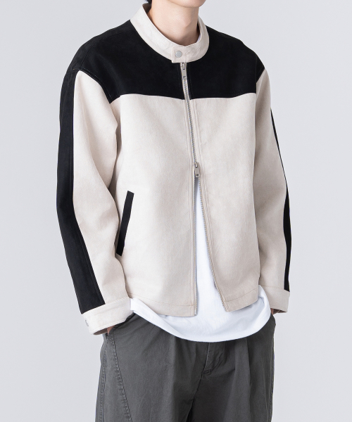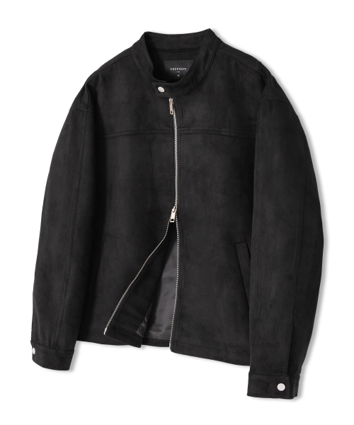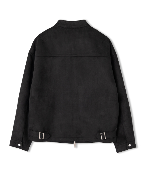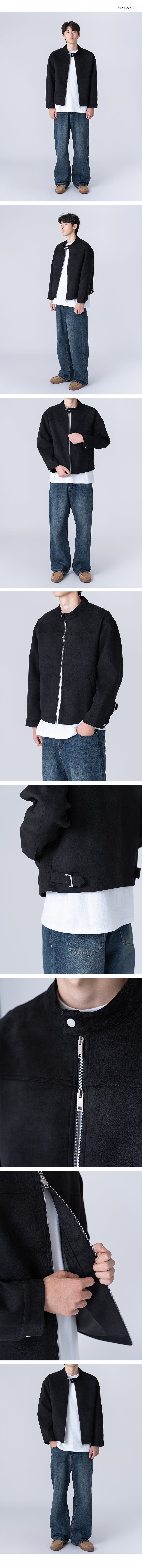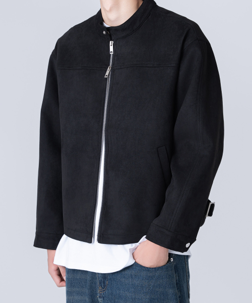 스웨이드 투웨이 집업 바이커 자켓 블랙