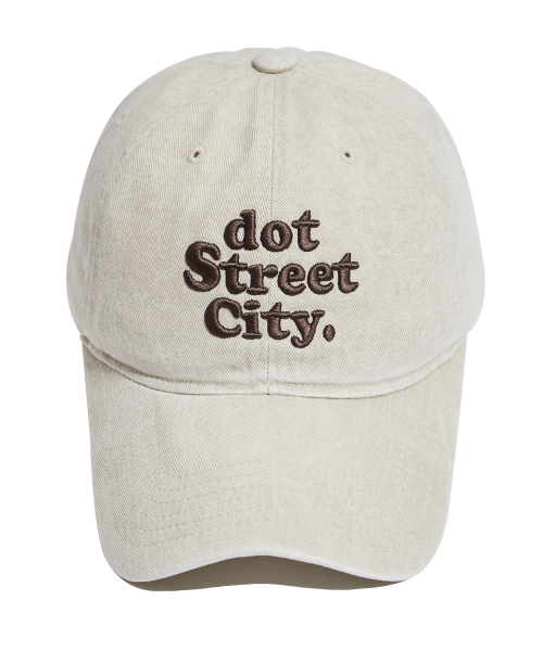 DOT 워싱 자수 볼캡-연베이지