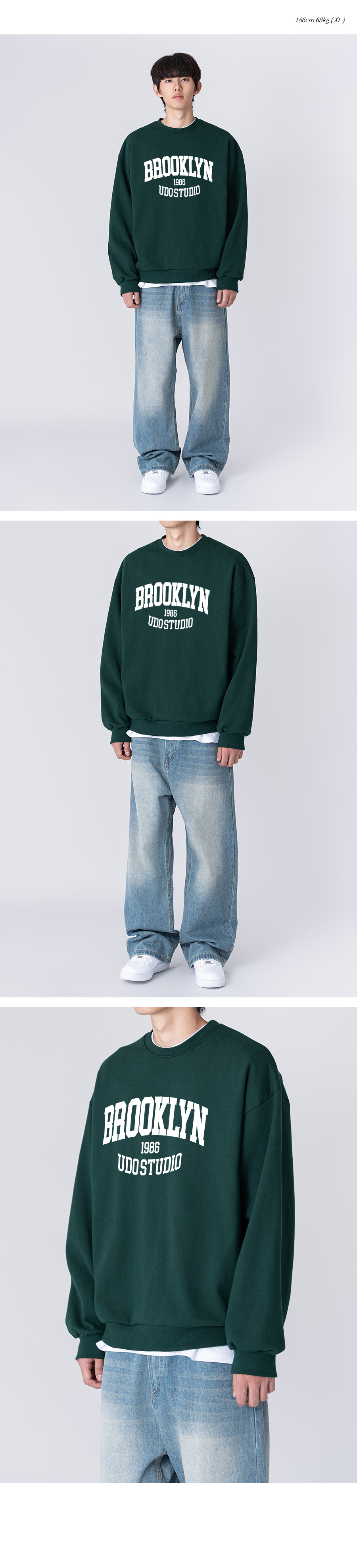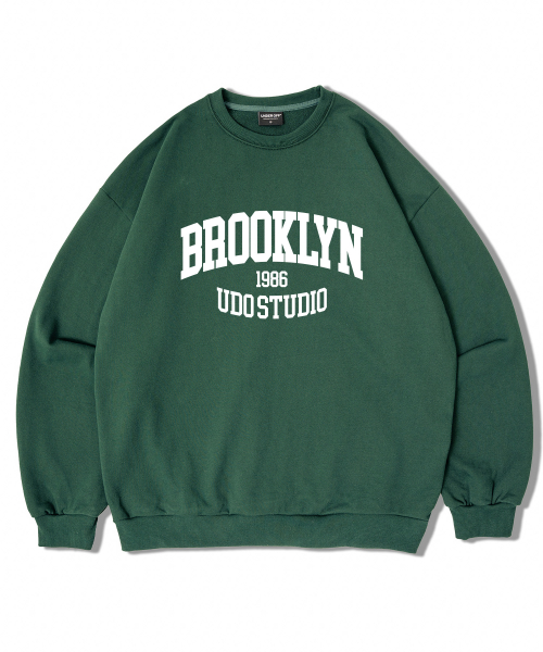 어센틱 릴렉스드 브루클린 맨투맨 스웨트 화이트그린