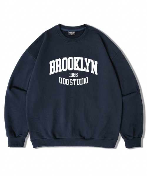 어센틱 릴렉스드 브루클린 맨투맨 스웨트 화이트블루