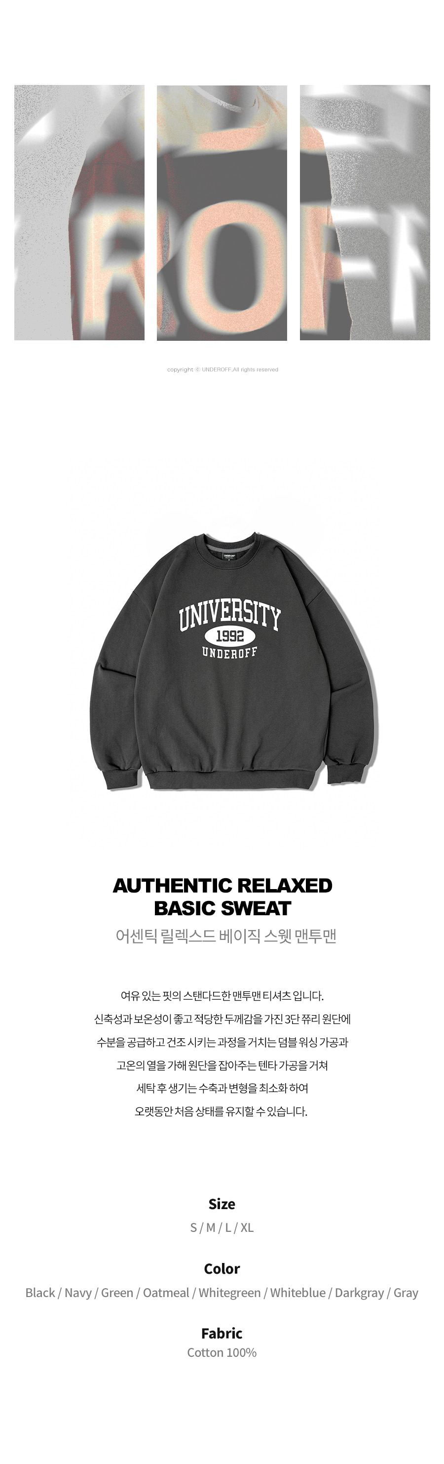 어센틱 릴렉스드 유니버시티 맨투맨 스웨트 다크그레이