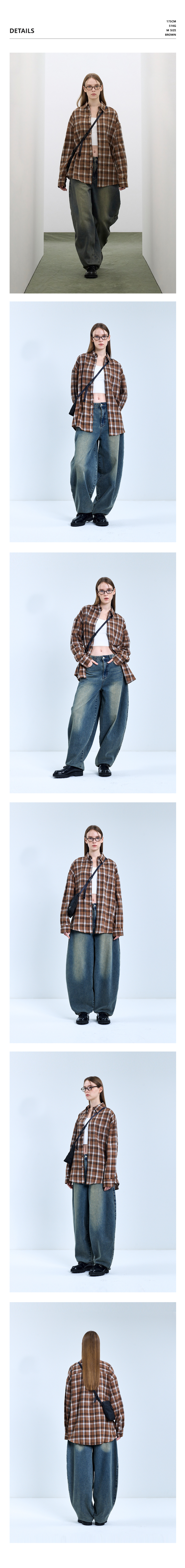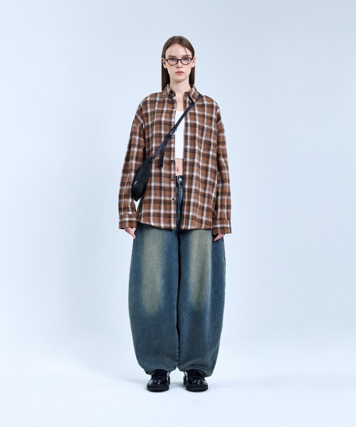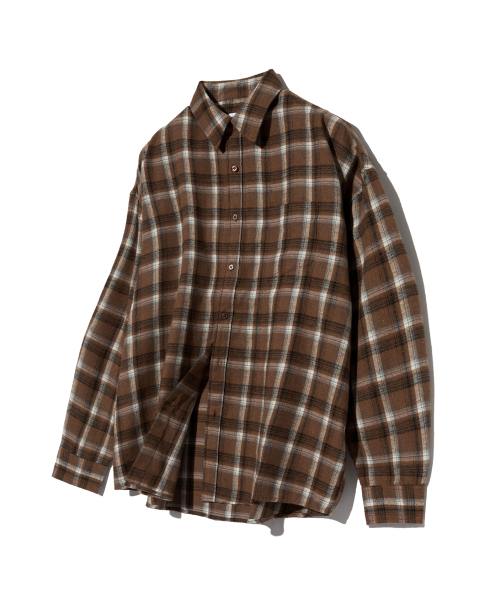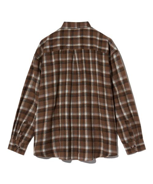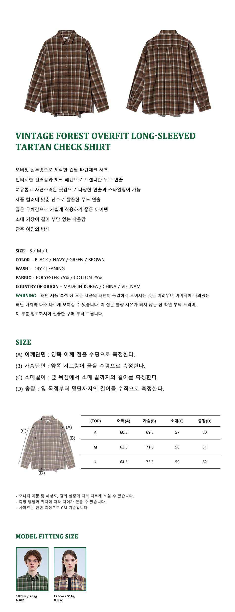 87-STAN092 빈티지 포레스트 오버핏 긴팔 타탄 체크 셔츠 브라운