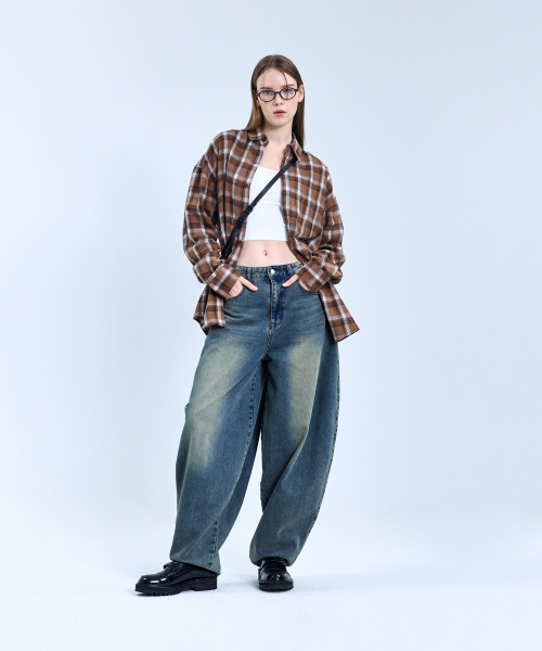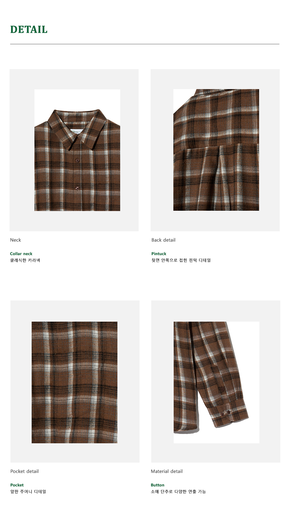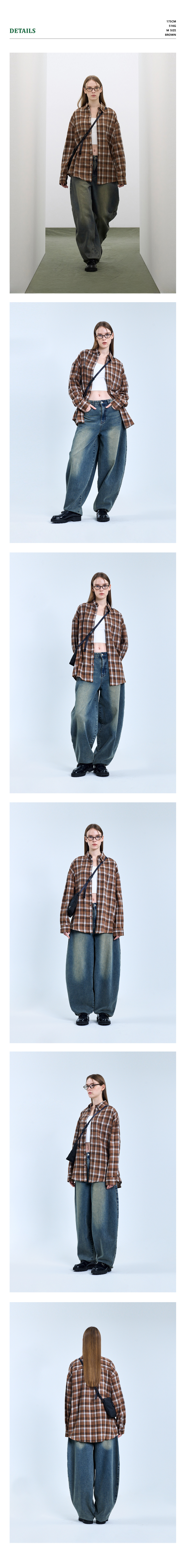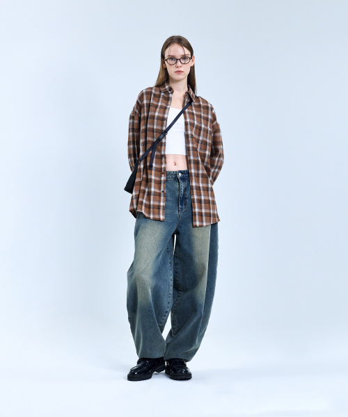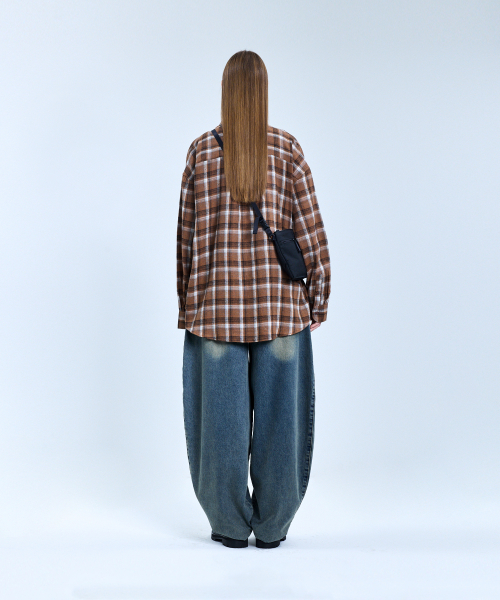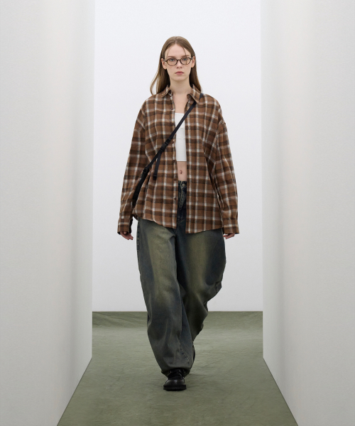 87-STAN092 빈티지 포레스트 오버핏 긴팔 타탄 체크 셔츠 브라운