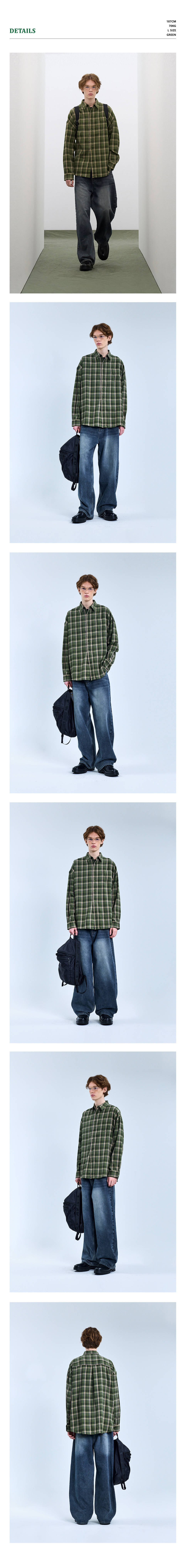 87-STAN080 뉴트럴 팜 오버핏 포켓 긴팔 체크 셔츠