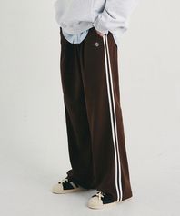 원턱 투 라인 와이드 스웨트팬츠 브라운