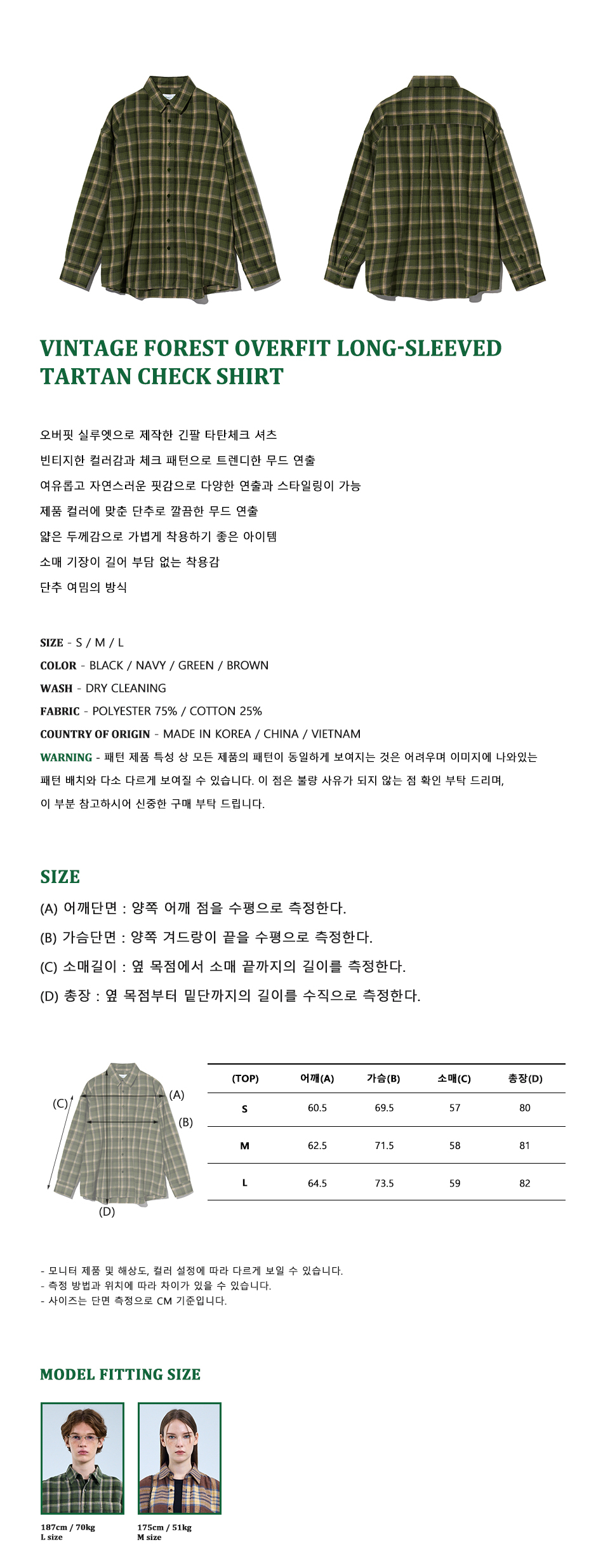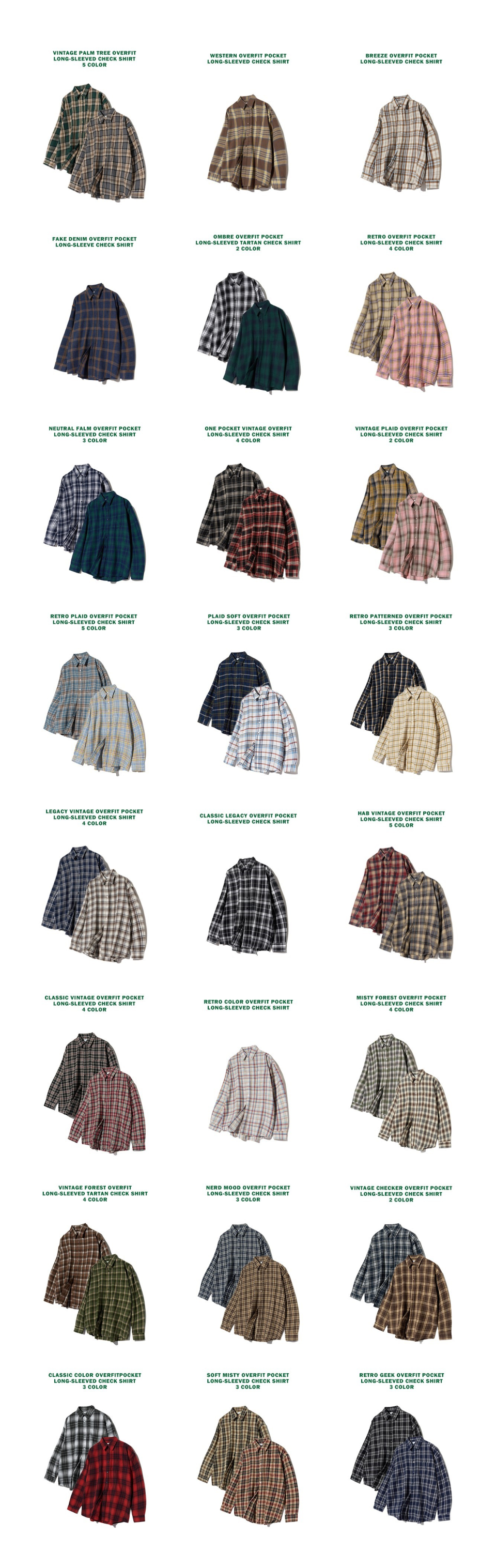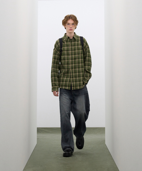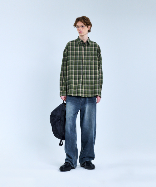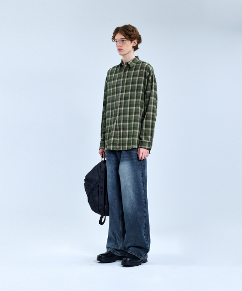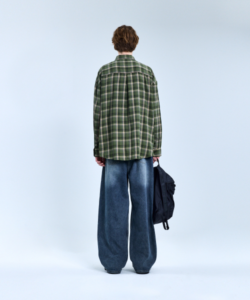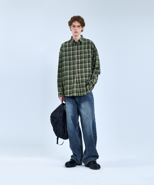 87-STAN092 빈티지 포레스트 오버핏 긴팔 타탄 체크 셔츠 그린