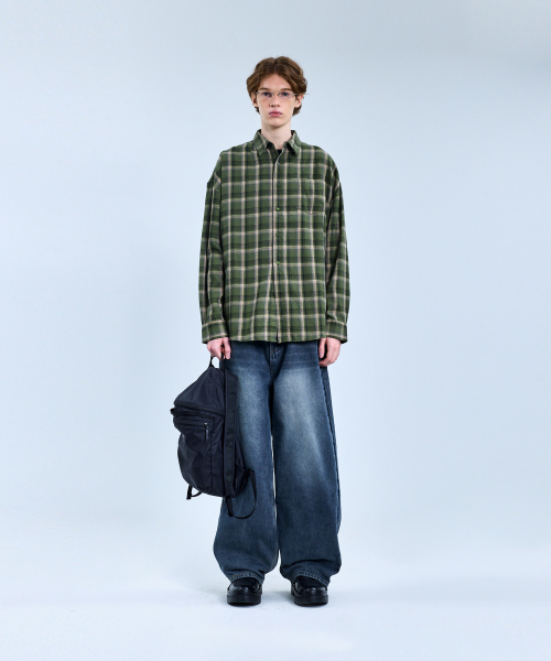87-STAN081 원포켓 빈티지 오버핏 긴팔 체크 셔츠 블루