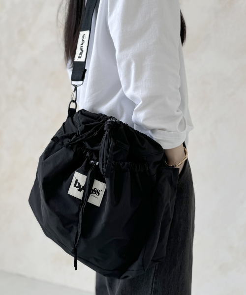 더블 스트링 크로스백 - 블랙