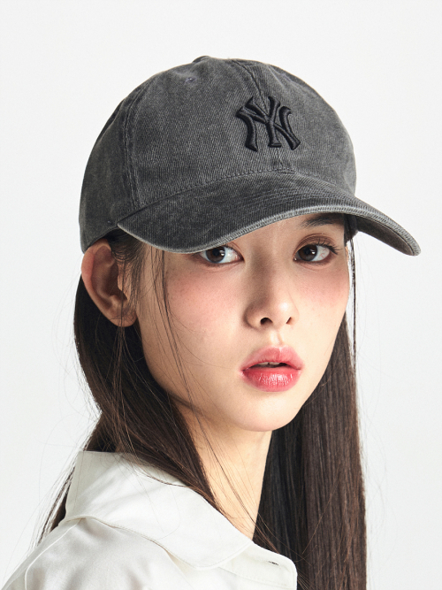 베이직 워싱 언스트럭쳐 볼캡 NY (D.Grey)