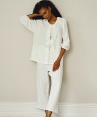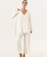 모슬린 거즈 리본 긴팔 상하 세트
