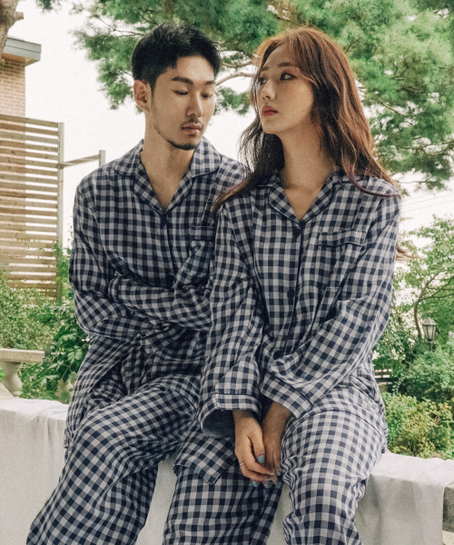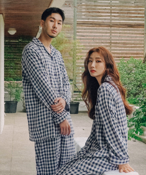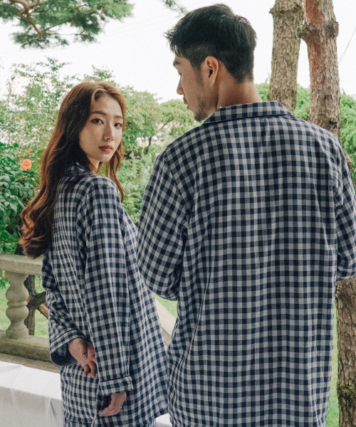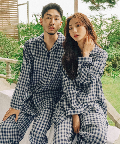 네이비체크 순면 잠옷세트 홈웨어 커플파자마