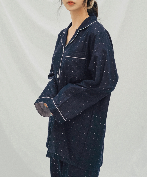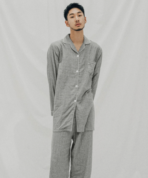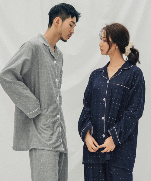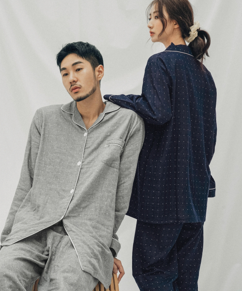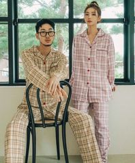 [2SET] 미니멀 잔체크 커플 반팔 잠옷세트