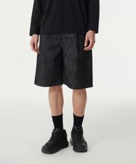 버티컬 슬러브 원 턱 와이드 데님 쇼츠 [블랙]