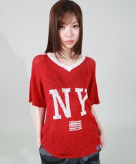 NY FLAG V-NECK KNIT RED