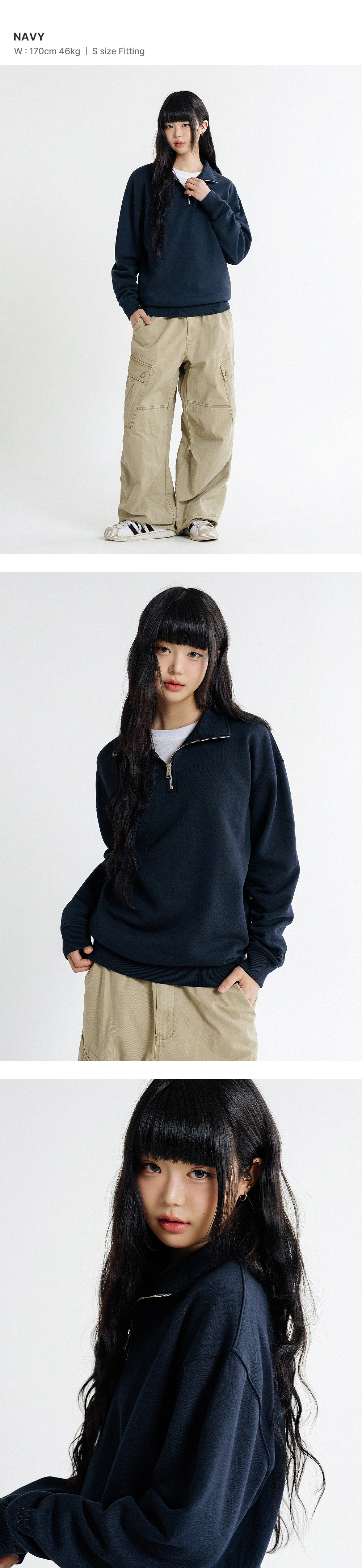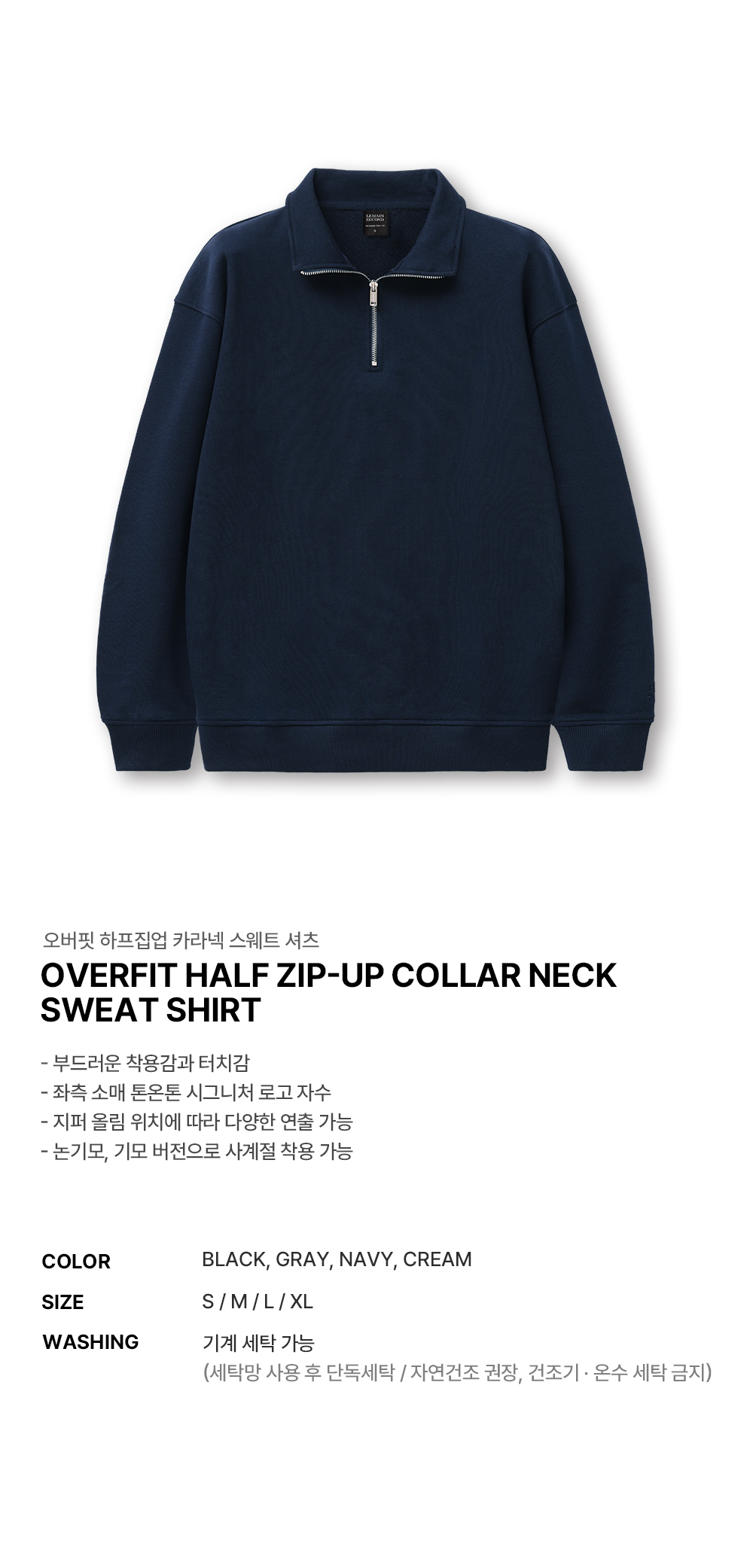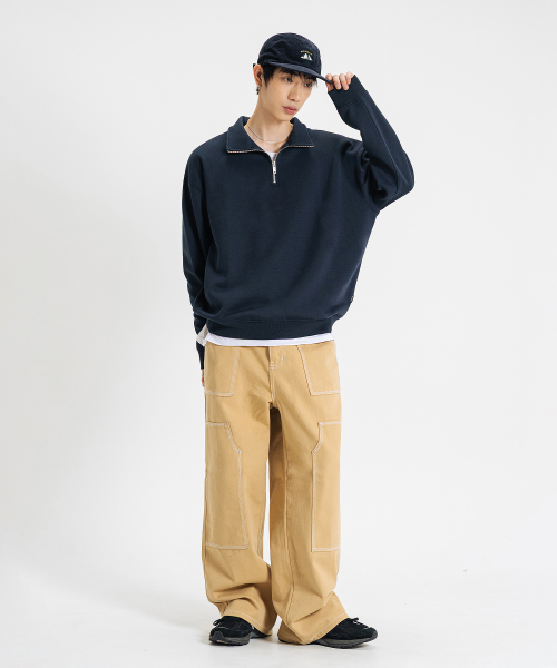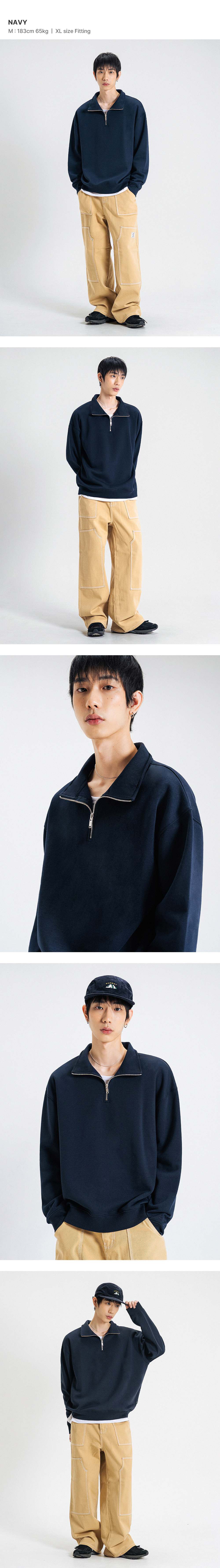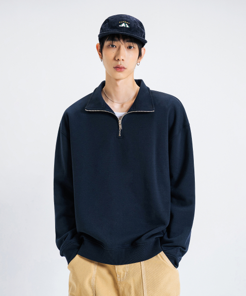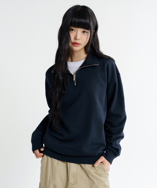 오버핏 하프집업 카라넥 스웨트 셔츠 [네이비]