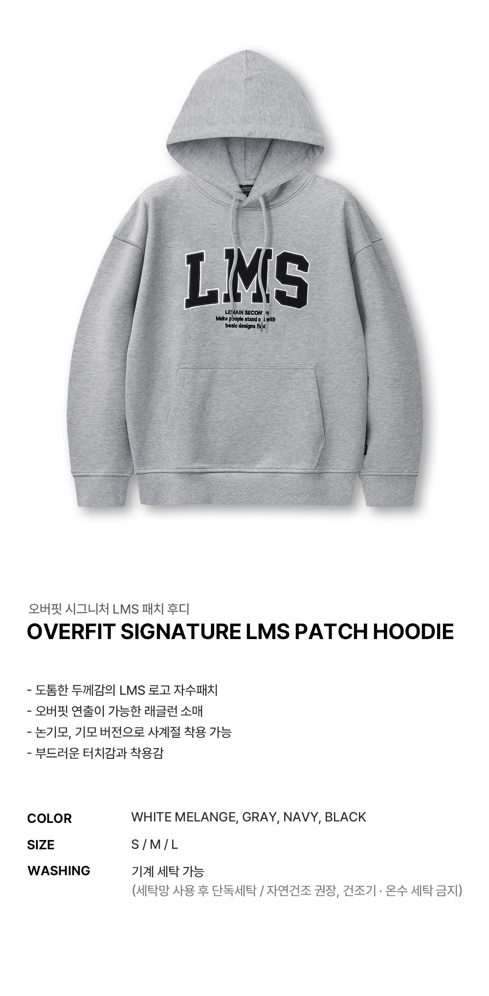 오버핏 시그니처 LMS 패치 후디 [그레이]