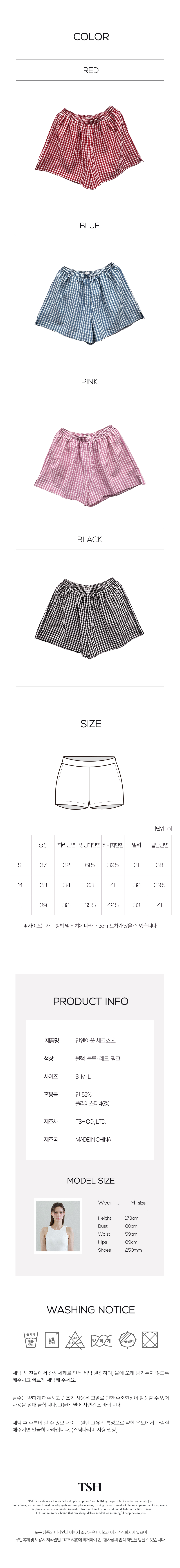 인앤아웃 체크쇼츠 4colors