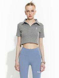 OG 오픈 카라 크롭 티셔츠 [그레이]
