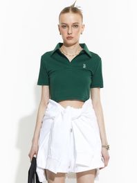 OG 오픈 카라 크롭 티셔츠 [그린]