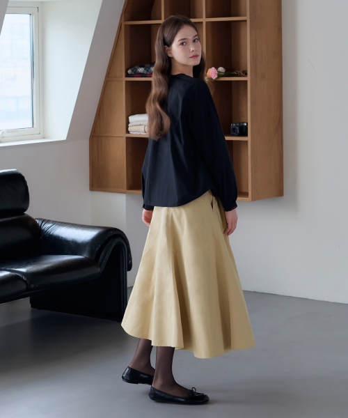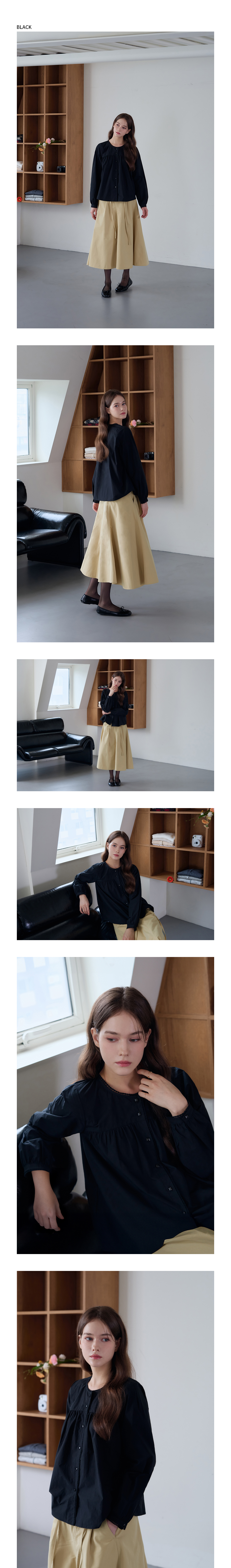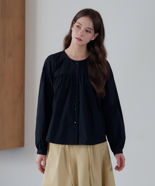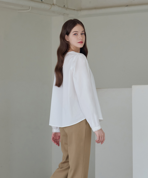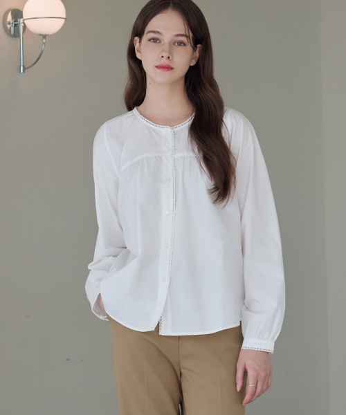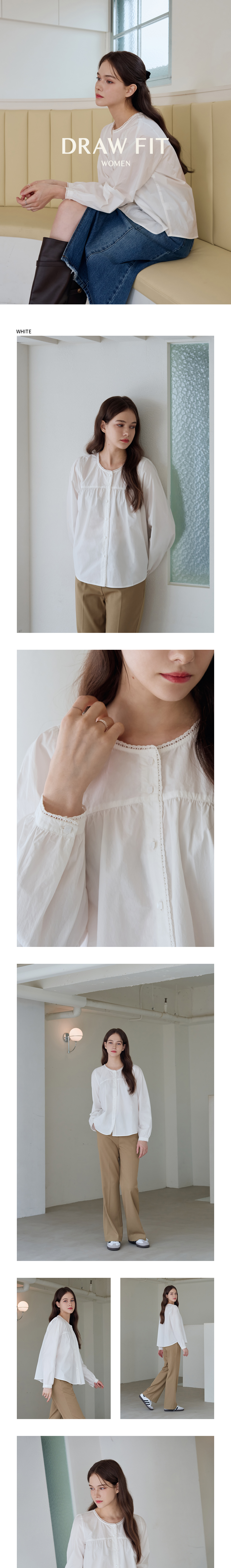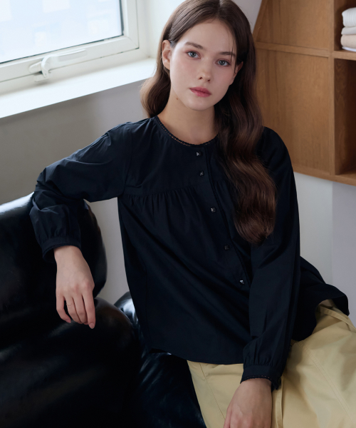 뮤트 셔링 레이스 코튼 블라우스 [BLACK]