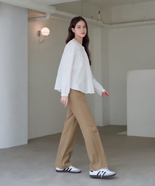 시어 셔링 뷔스티에 블라우스 [BROWN]