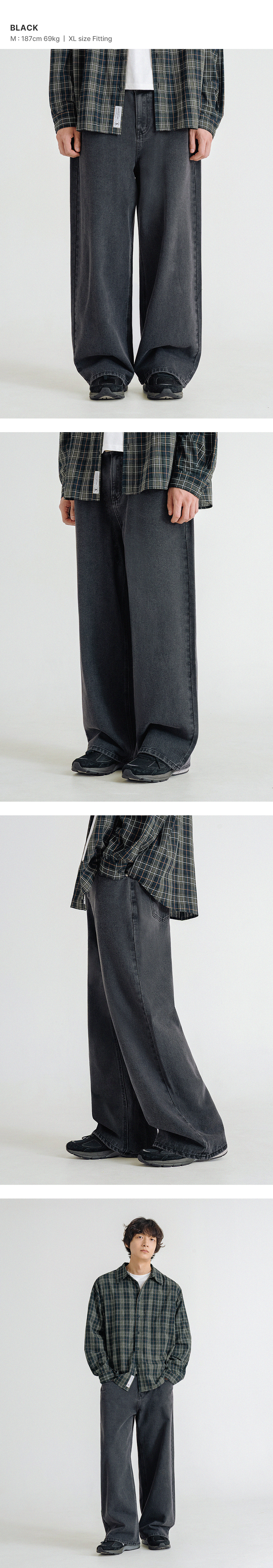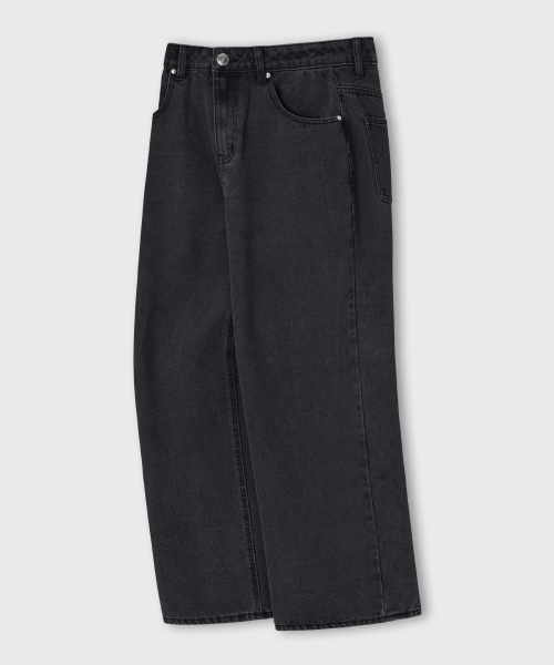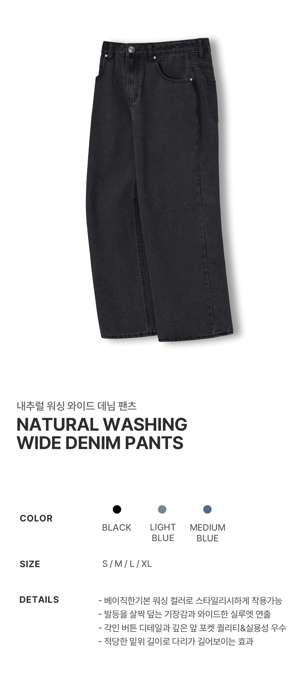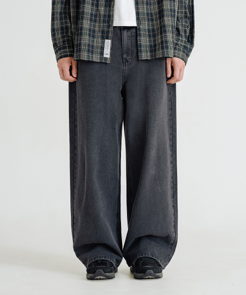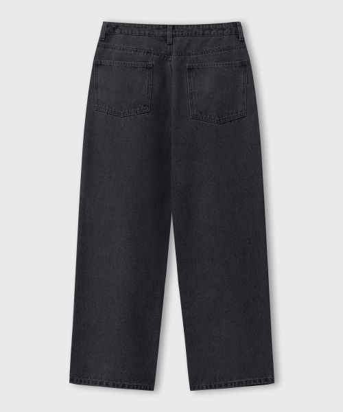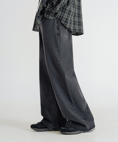 내추럴 워싱 와이드 데님 팬츠 [흑청]