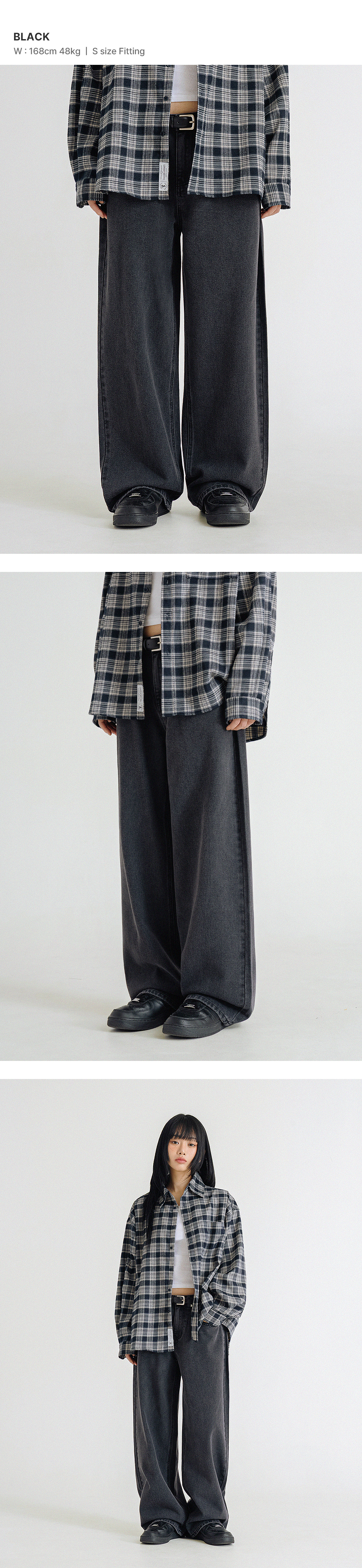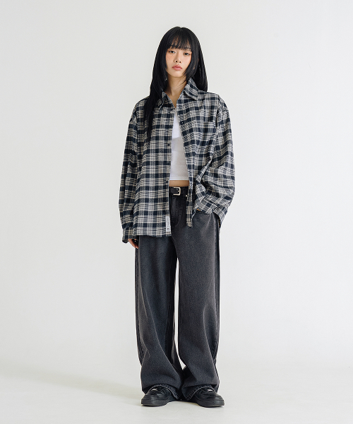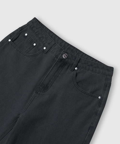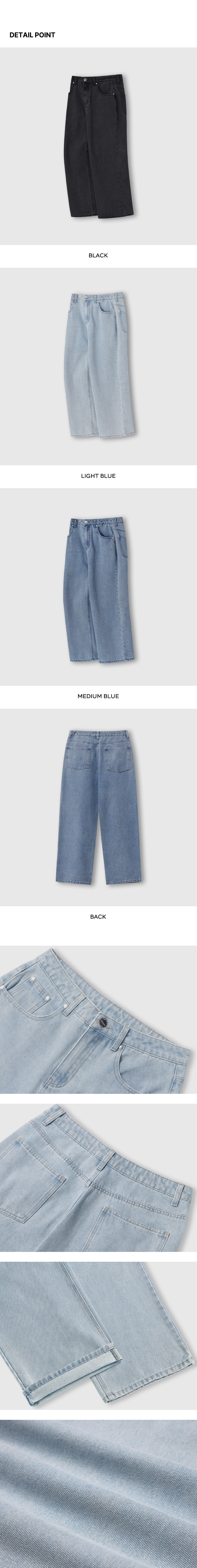 내추럴 워싱 와이드 데님 팬츠 [흑청]