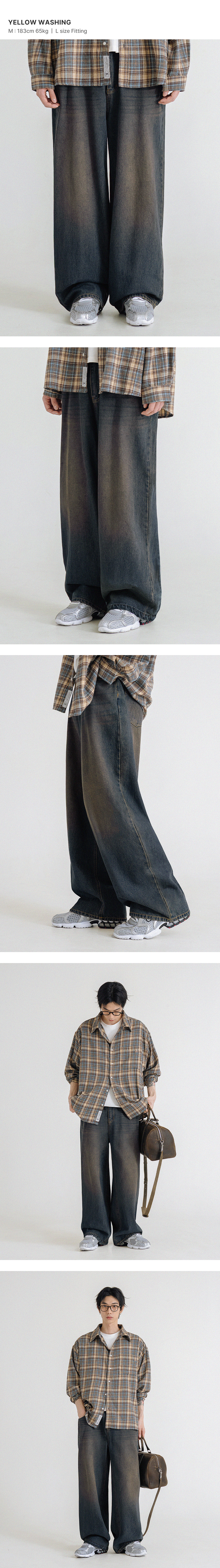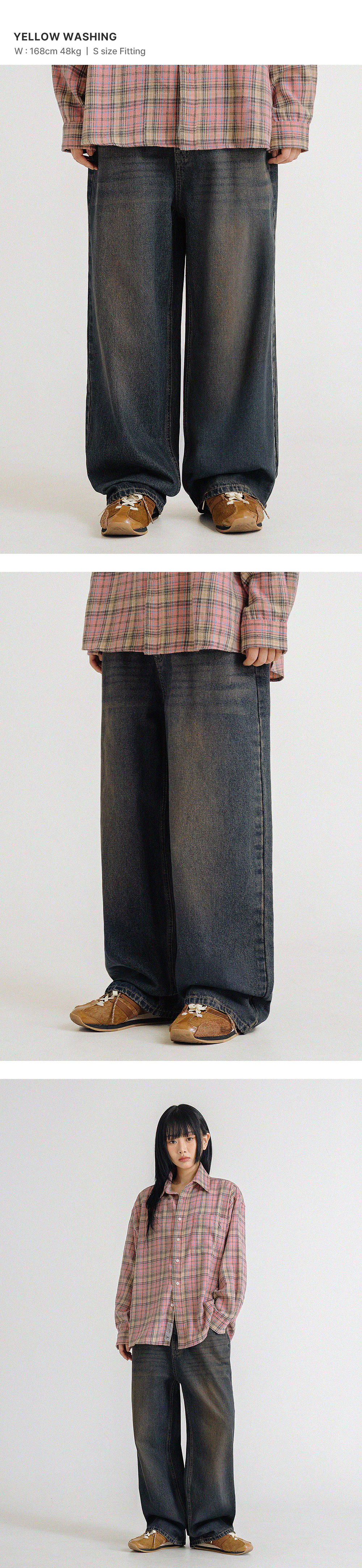 빈티지 캣워싱 와이드 데님 팬츠 [옐로우 워싱]