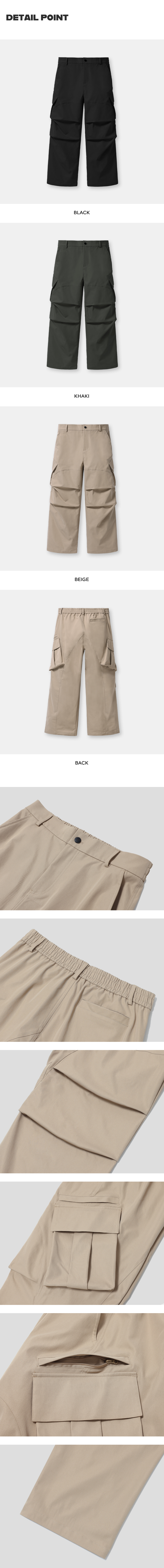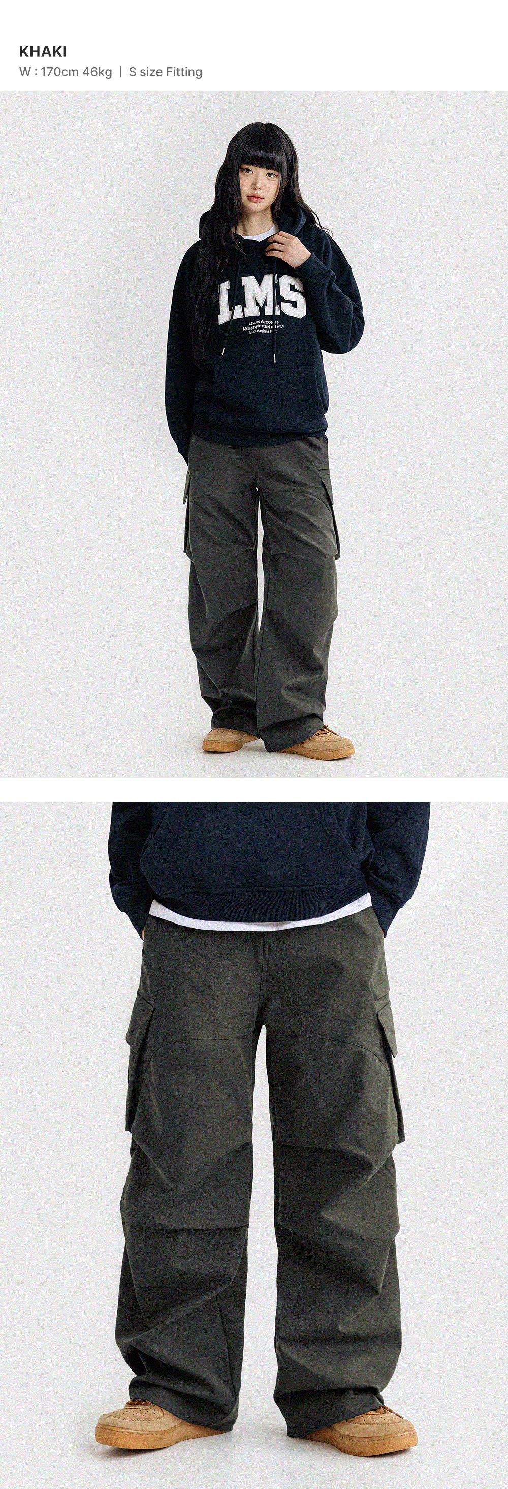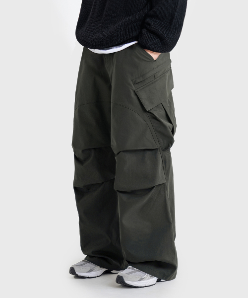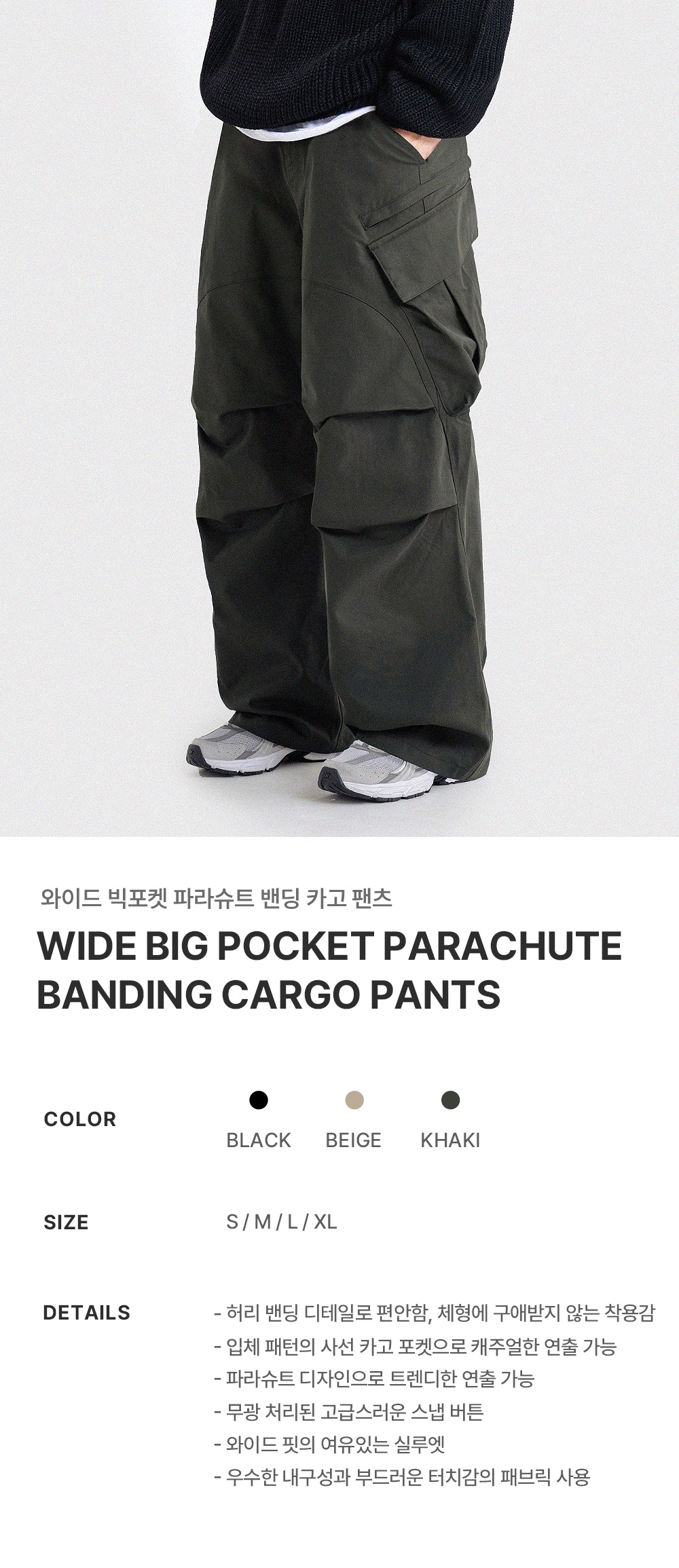 와이드 빅포켓 파라슈트 밴딩 카고 팬츠 [카키]