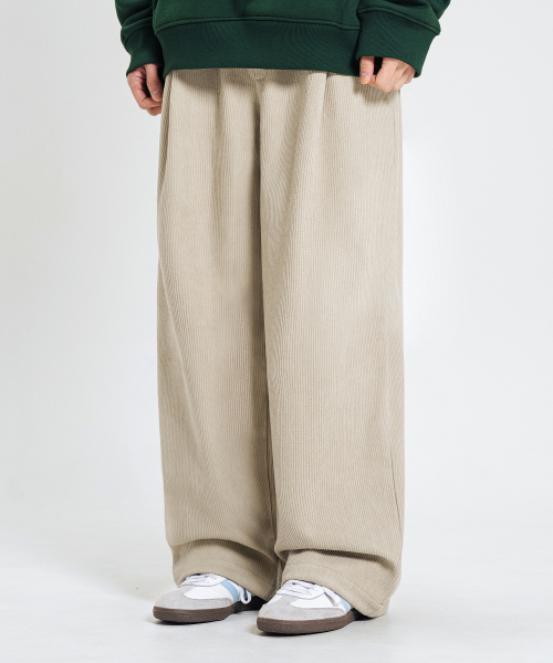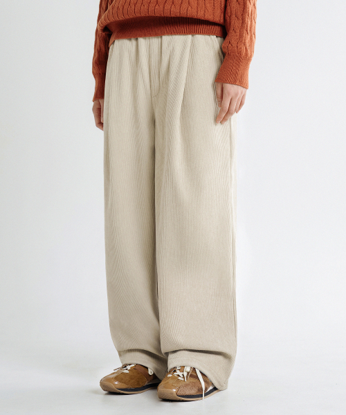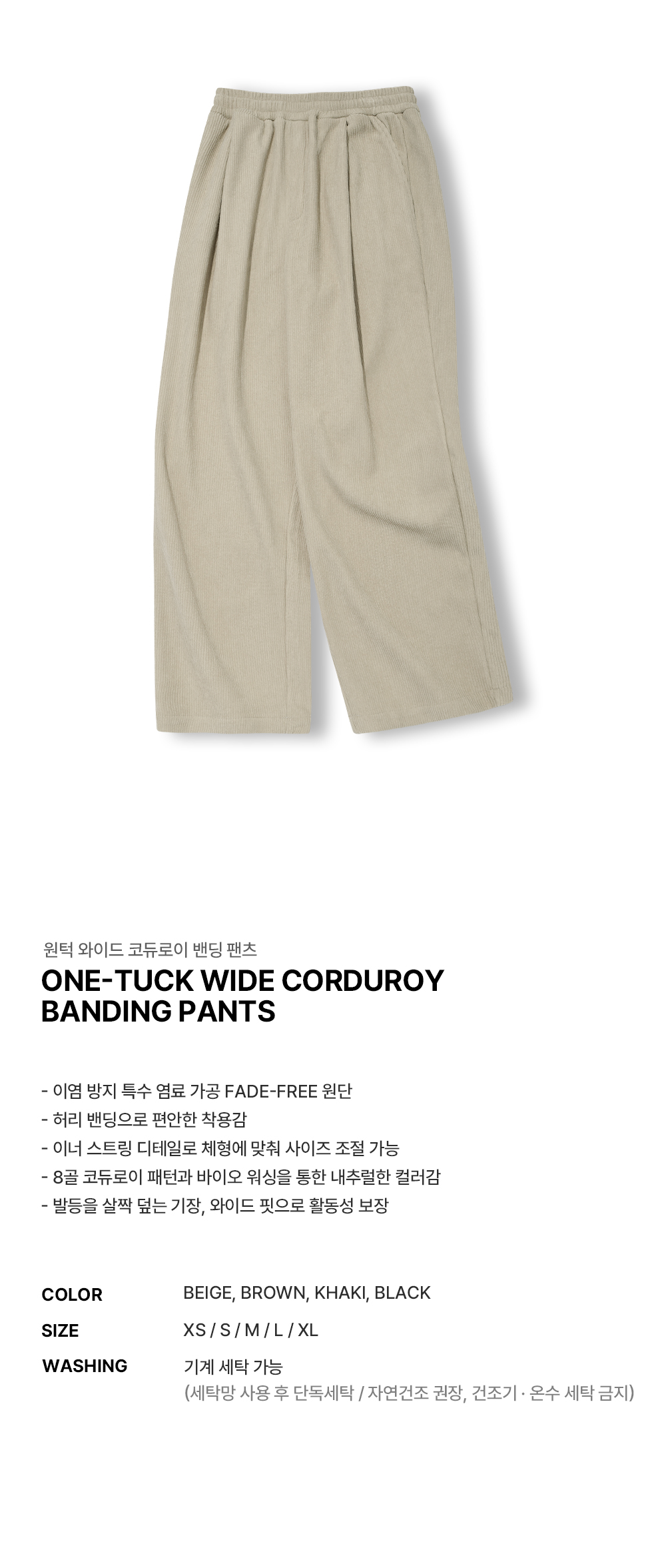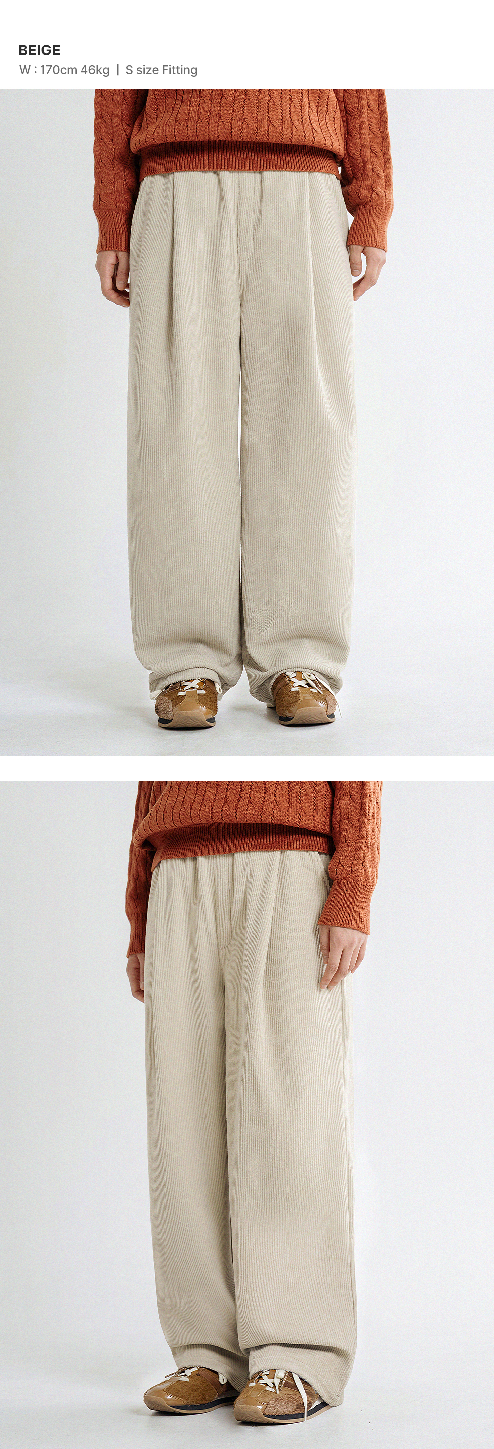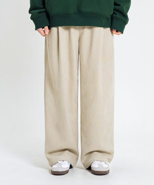원턱 와이드 코듀로이 밴딩 팬츠 [베이지]