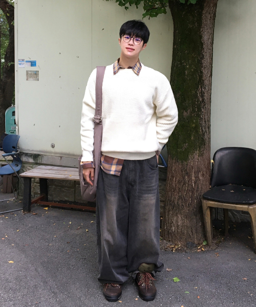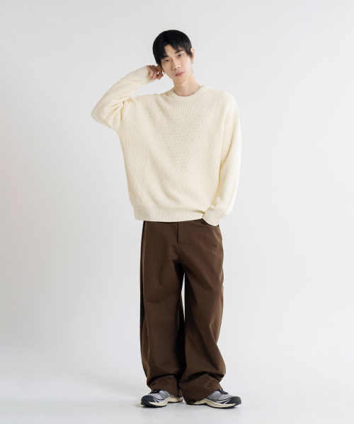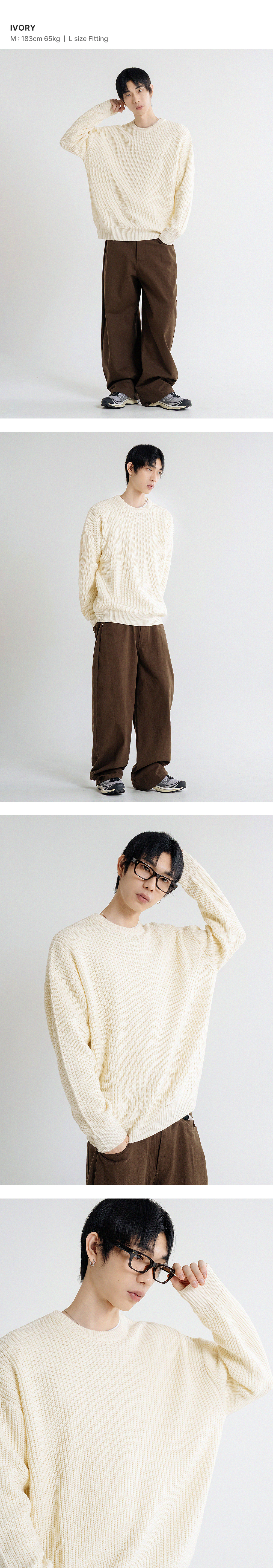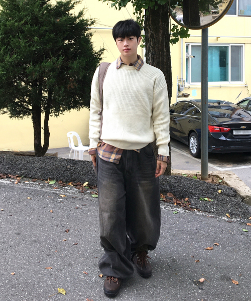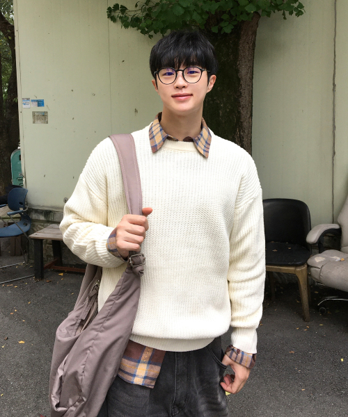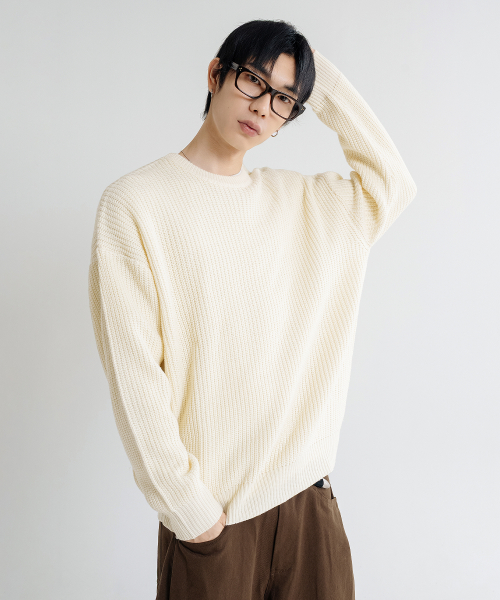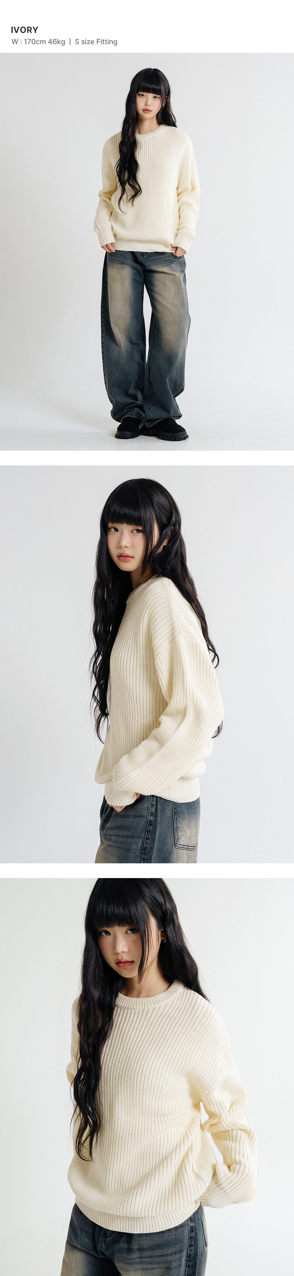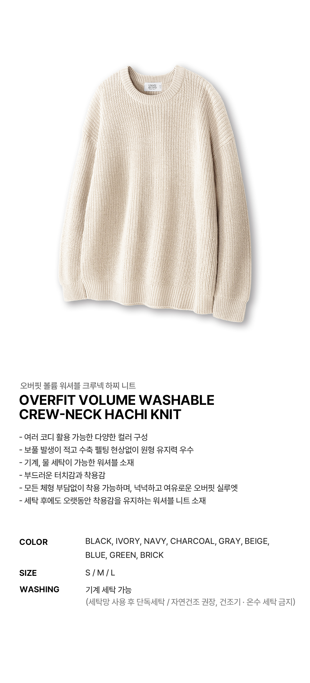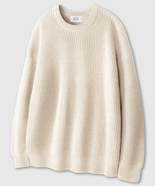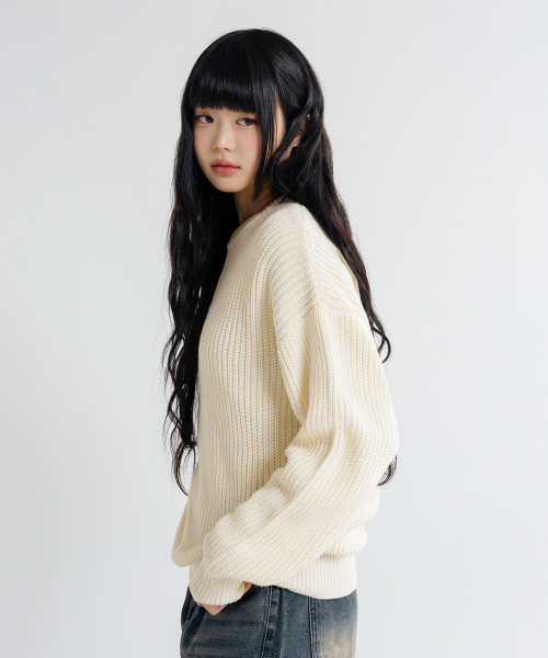 오버핏 볼륨 워셔블 크루넥 하찌 니트 [아이보리]