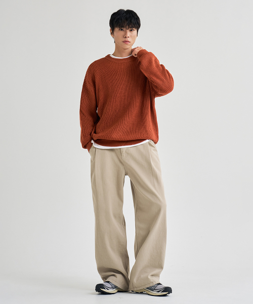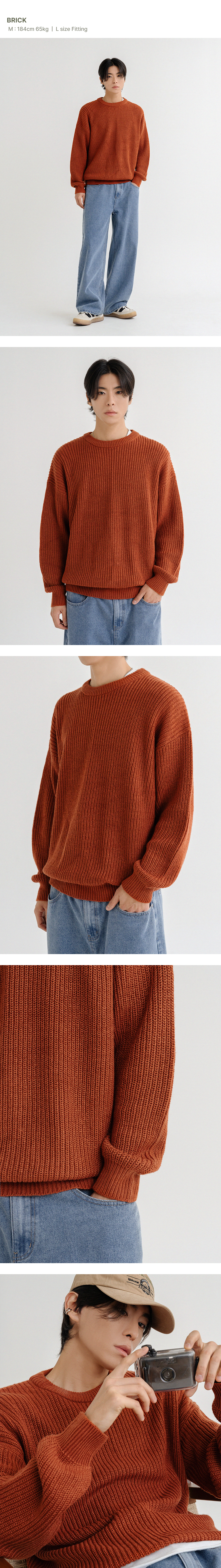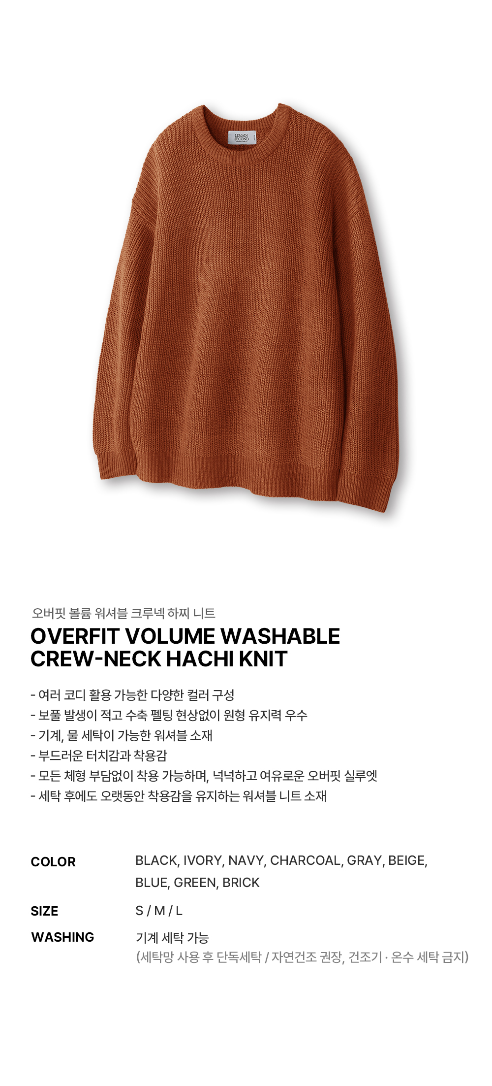 오버핏 볼륨 워셔블 크루넥 하찌 니트 [브릭]